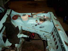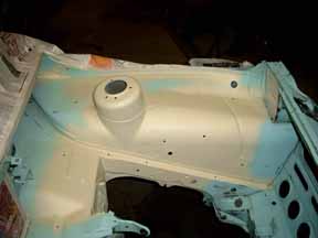 Nach der Versiegelung von einigen Nähten und der anschließenden Grundierung konnte es an die Schleiferei gehen. Das abschleifen im Motorraum ist die Hölle :-(( man hat keine gerade Fläche überall Ecken und Kanten oder es stehen irgendwelch Halter oder Schrauben raus.