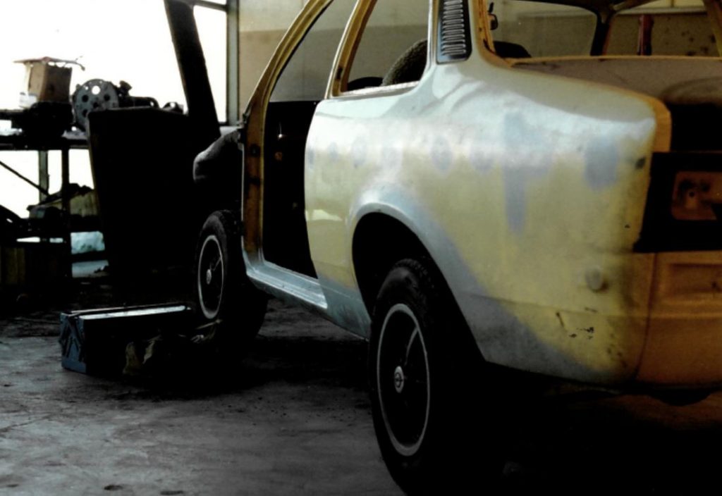 Jetzt konnte der neue Vorderbau rein, der war nicht nur wegen dem Unfall notwendig sondern auch wegen dem Umbau auf den 1.6L CIH Motor da es vorher ja ein 1.2L war.