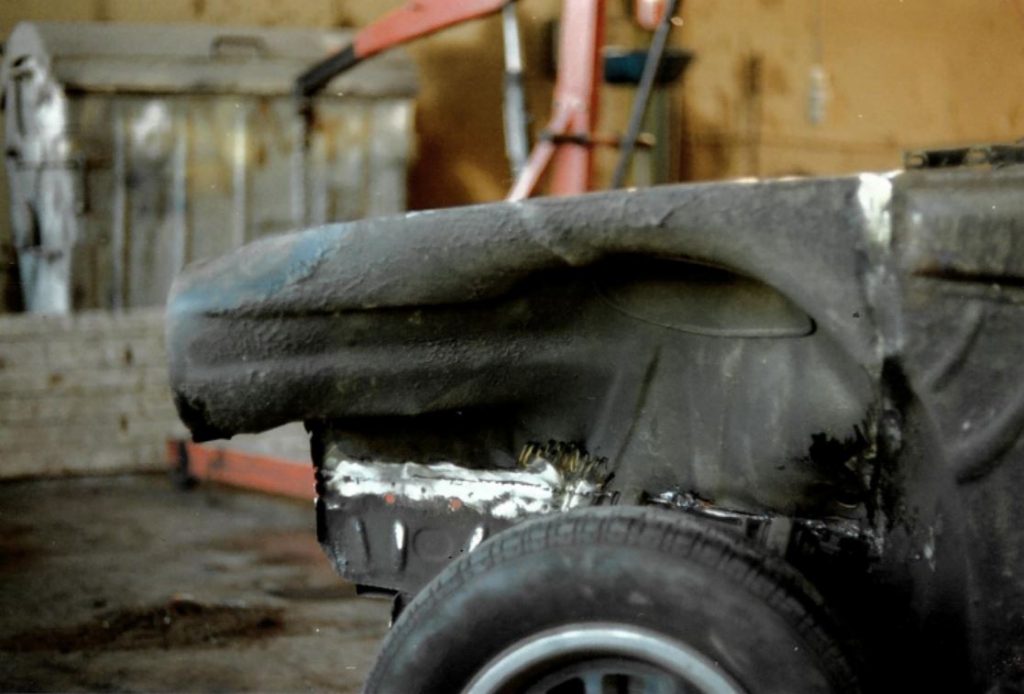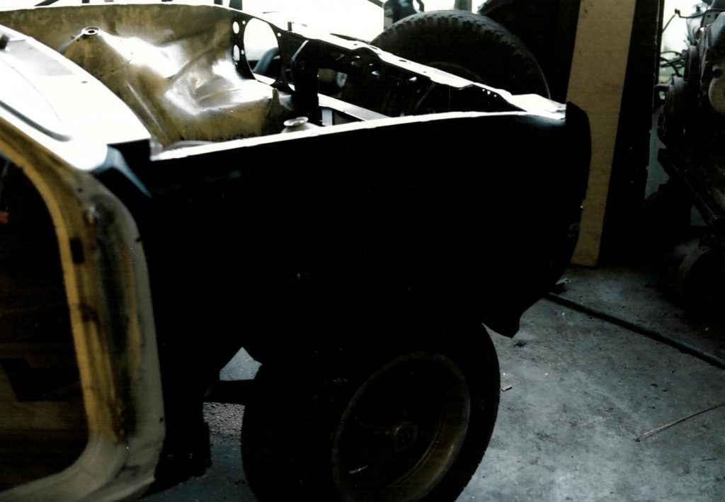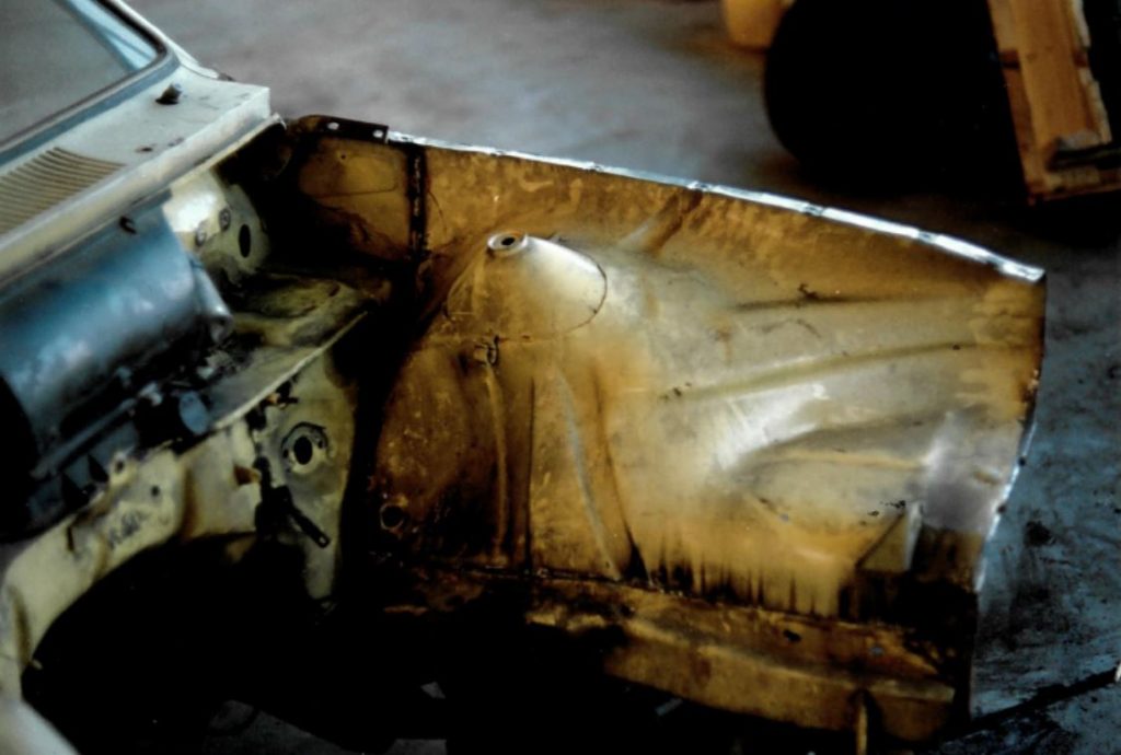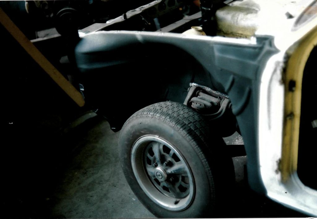 Da ich 1991 einen Unfall hatte bei dem das linke Innenradhaus beschädigt wurde hatte ich mir auf dem Schrottplatz ein gutes rausgeschnitten was jetzt hier eingesetzt wurde.
