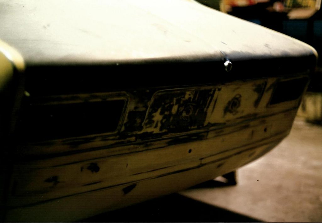 Auch am Heckblech wurde alles was ansatzweise nicht mehr gut aussah abgeschliffen und ein neuer Kofferraumdeckel kam drauf.