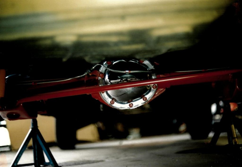 Die Hinterachse stammt von einem 1.6L mit der 3/89 Übersetzung, ich habe sie Sandstrahlen lassen, neu lackiert und mit einem Chromedeckel versehen.