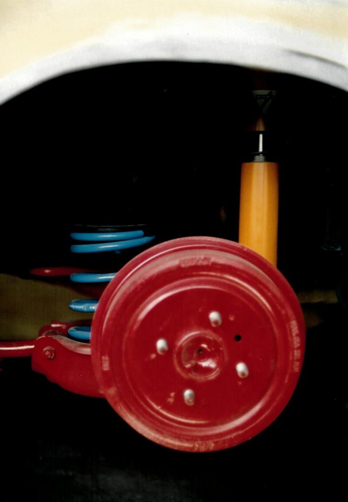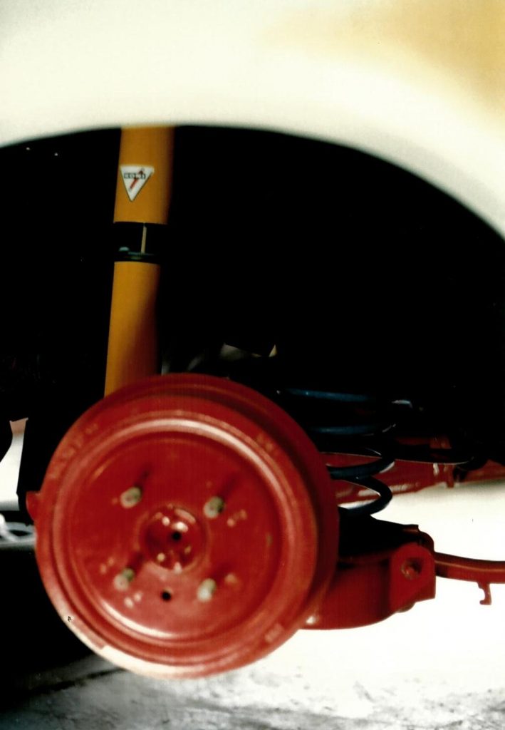 Die Bremse wurde komplett erneuert und die Hinterachse mit einem Mattig/Koni Fahrwerk eingebaut.