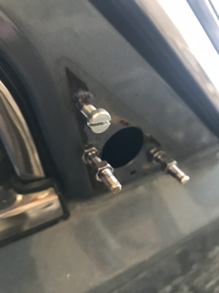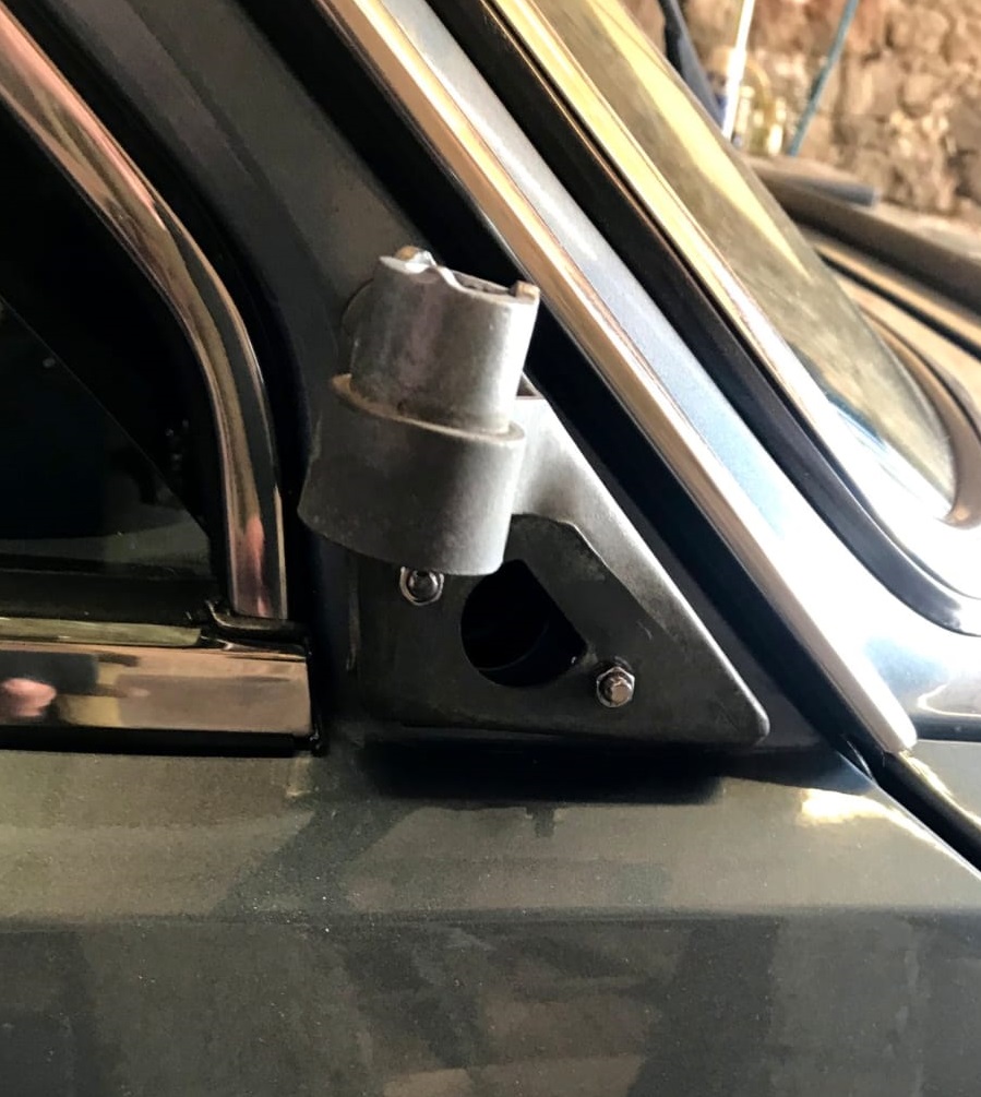 Zum rechten Außenspiegel, es hat mich sehr gefreut das ich so etwas überhaupt noch auftreiben konnte aber bei genauer betrachtung ist dann aufgefallen das man für den Außenspiegel eine Halteplatte braucht die am Türrahmen befestigt wird und die war natürlich nirgendwo mehr aufzutreiben.