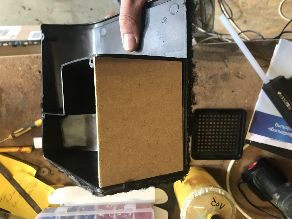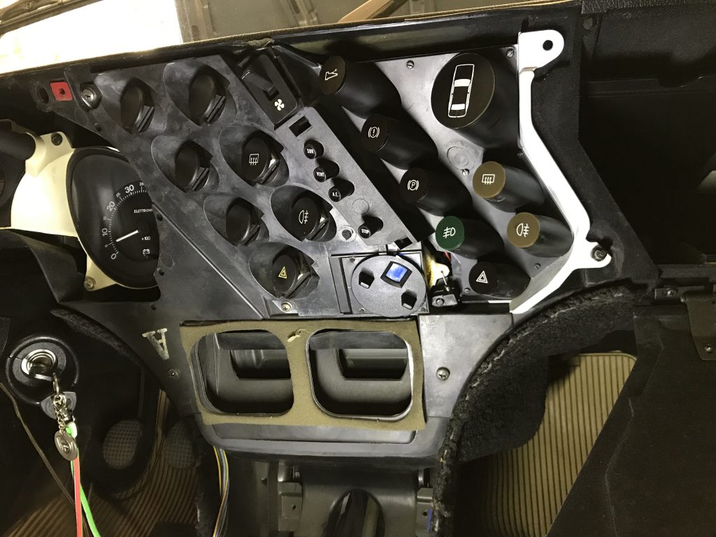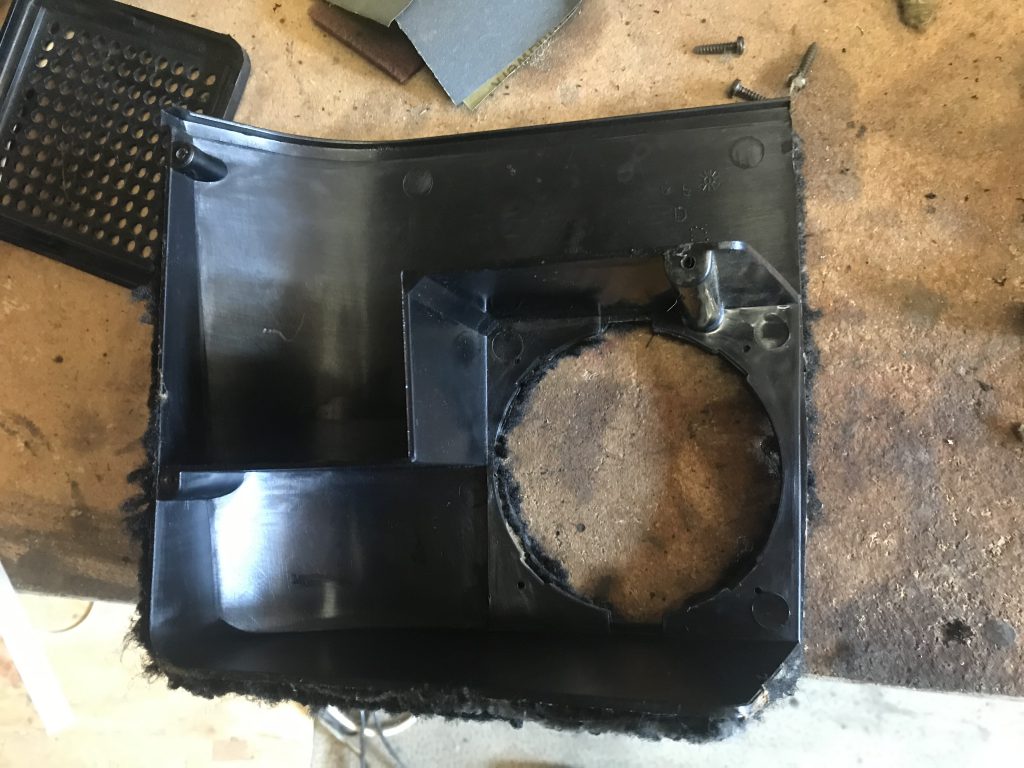 Eine original Radioblende habe ich für den Trevi auch nicht mehr gefunden das war aber auch nicht sehr problematisch da es hier ja eh nur eine einfache Platte ist. Ich habe aus einer ca. 5mm starken Sperrholplatte was entsprechendes ausgeschnitten, die ein paar mal grundiert damit die Maserung nicht mehr zu sehen ist und dann matt schwarz lackiert und von hinten mit der Mittelkonsole verschraubt.