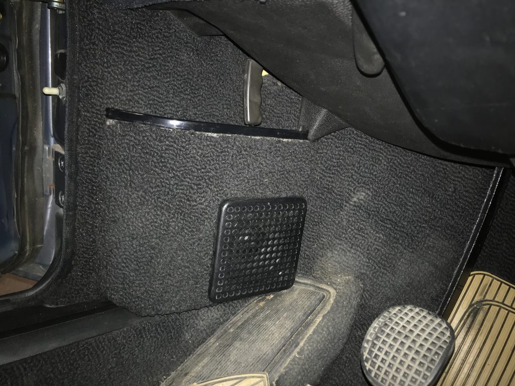 Im Fußraum befinden sich auf beiden Seiten ein Verkleidung mit Ablagefach wo außen Lautsprecheblenden dran sind. Nach demontage der Blende war ersichtlich das man hier 10cm Lautsprecher verbauen kann. Da aus dem Fußraum nicht viel Klang zu erwarten ist habe ich mich für ein Zweiwegesystem von Sinuslife SL-105 entschieden so das zumindest die Hochtöner dann oben sitzen können.