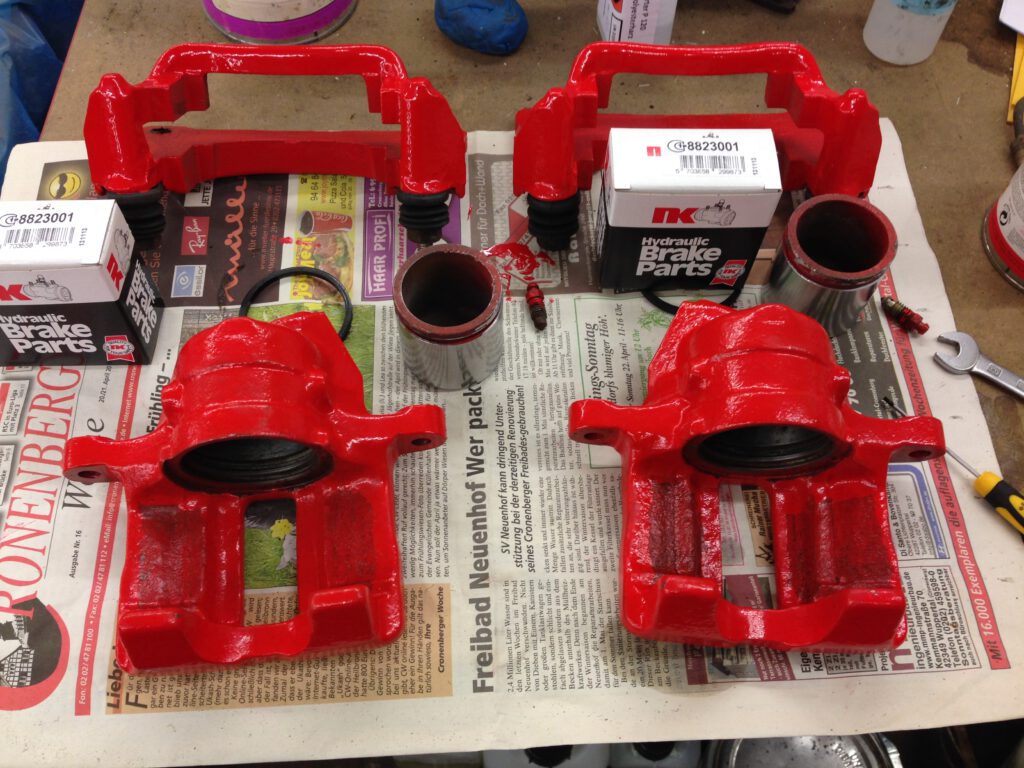 Die Bremssättel wurden auch komplett überholt und mit Neuteilen bestückt und Lackiert.