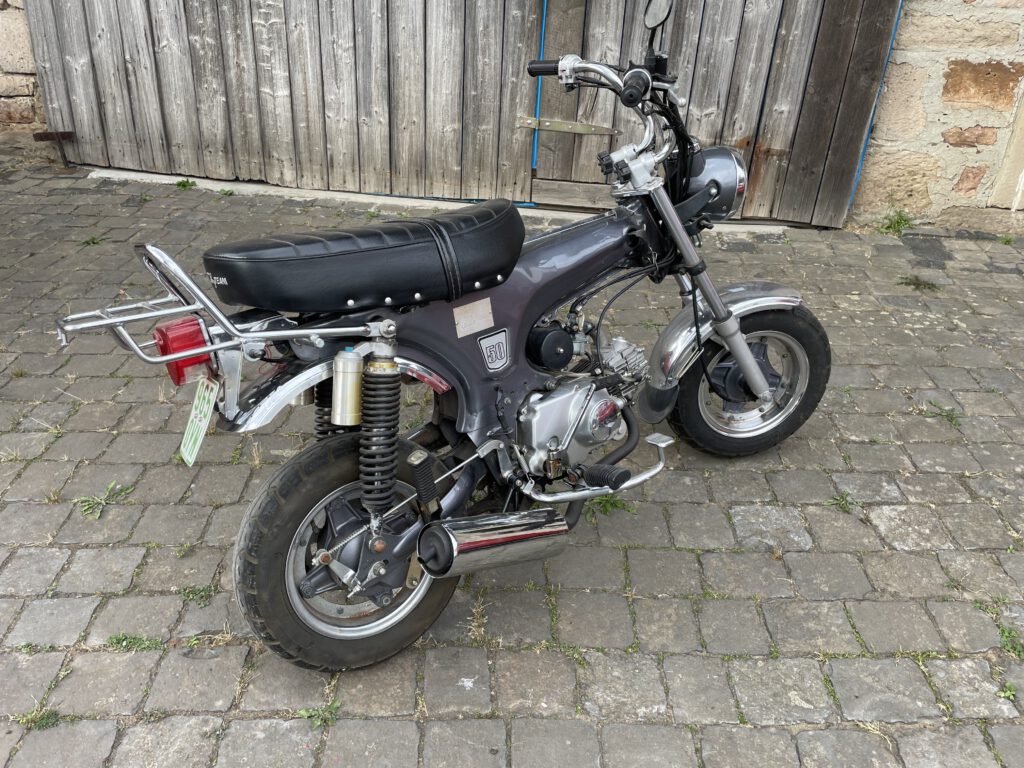 Die SkyTeam Skymax 50 ist eine Honda Dax Replika und die habe ich 2019 gekauft und sollte uns für unseren Wohnwagen als Campingfahrzeug dienen. Dieser 50ccm Viertackt-Motor war aber so lahm das ich sie letztendlich nicht wirklich gefahren bin. Ich wollte sie mit einen 70-90ccm Satz flotter machen die Händler haben sich so dämlich angestellt das nie was aus der Aufrüstung geworden ist so das ich sie dann 2023 verkauft habe.